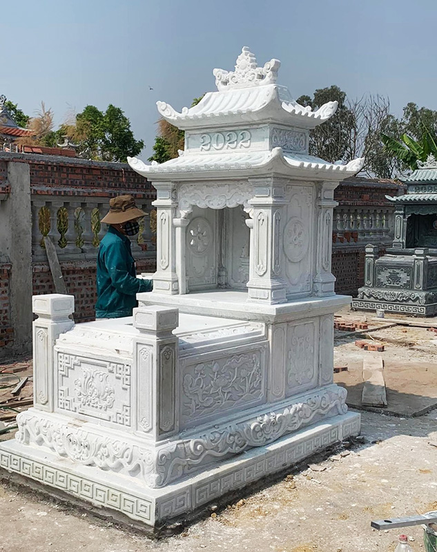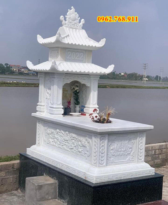 Mẫu mộ đá đẹp, được lựa chọn nhiều nhất hiện nay Mẫu mộ đa trắng 2 mái mo da nguyen khoi ninh binh chat luong cao 3.3. Mẫu mộ đá trắng – Tượng trưng cho sự thanh khiết