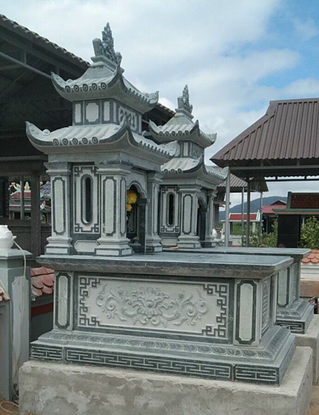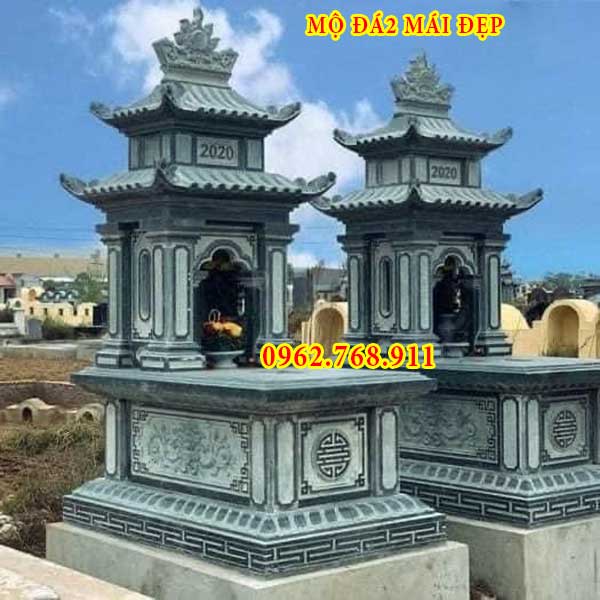 Mộ đá có mái (mộ hai mái, ba mái, mộ tháp): thiết kế phức tạp hơn, khối đá lớn, nhiều chi tiết chạm khắc, do đó giá cũng cao hơn.